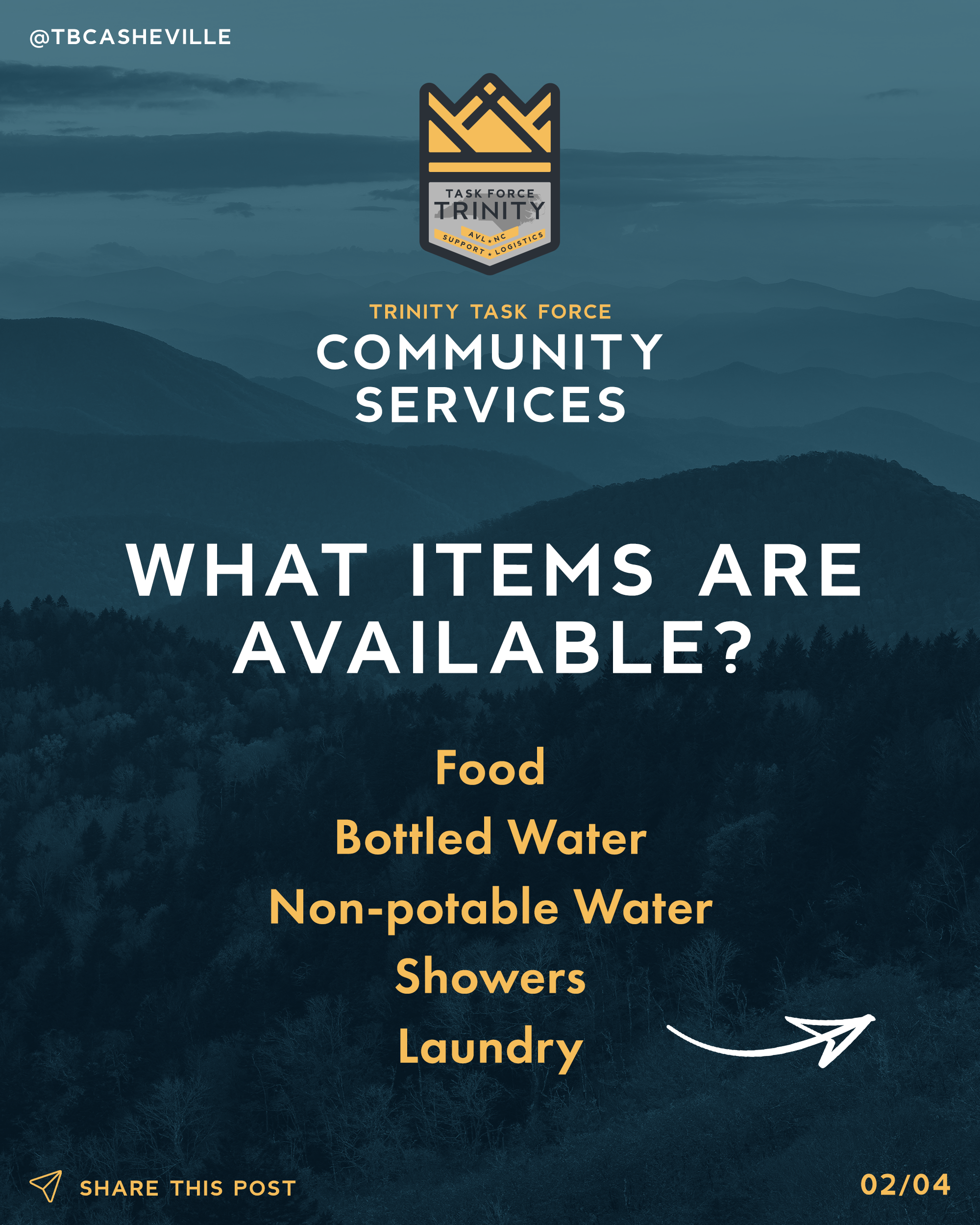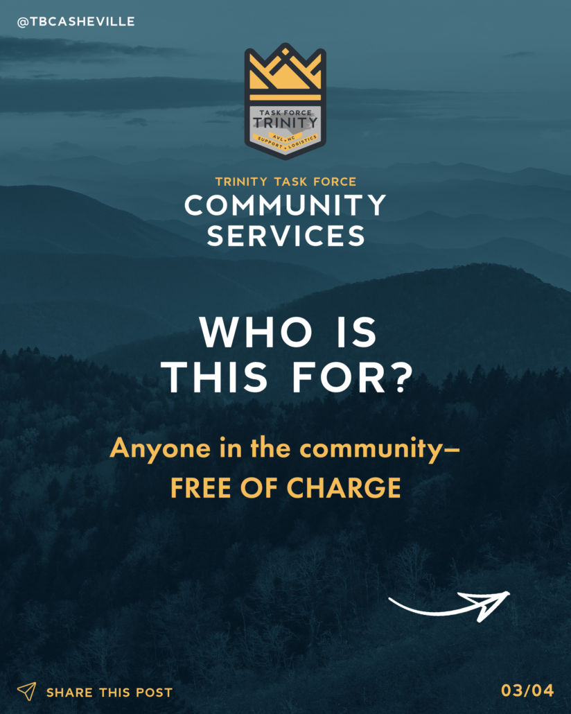 As we continue our 4-tier operation for Emergency Service personnel from our community and for responders that are here in WNC from out-of-state, our Community Services program continues to expand for our neighbors in the Asheville area.